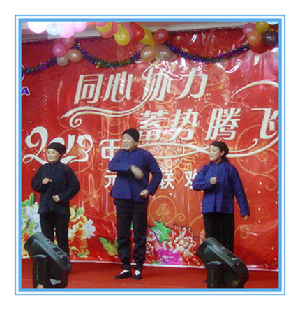 大会在一片欢乐声中拉开帷幕,联欢会精彩纷呈,让全体员工在愉悦、欢畅的气氛中畅想过去、憧憬未来!员工们自编自演,表演节目有歌曲、舞蹈、双簧、小品、诗朗诵、互动游戏等等,可以说应有尽有、丰富多彩。他们用各自不同的方式共同抒发、表达对公司的无限热爱,对美好生活的向往和憧憬,